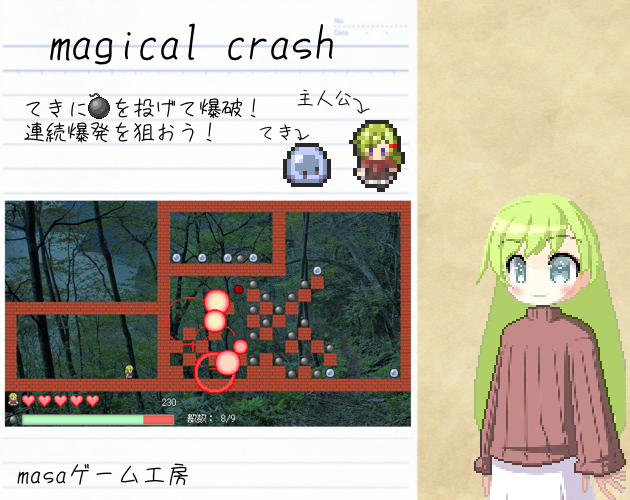 横スクロールアクションゲームMagical Crashは、アクションゲームの面白い部分を詰め込んで鋭意制作中です。